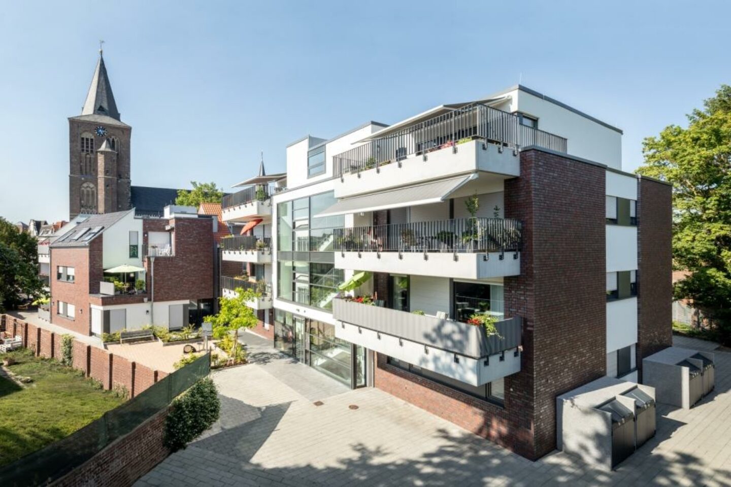 Der Caritasverband Region Mönchengladbach e.V. hat auf dem Grundstück des Alten Pfarrhauses in Korschenbroich eine Seniorenwohnanlage mit 17 Appartements mit dazugehörigen Aufenthaltsräumen sowie einer Tagespflegeeinrichtung errichtet. Das Gesamtprojekt besteht aus einem Ensemble von drei Baukörpern, welches sich aus dem vollständig zu entkernenden Pfarrhaus mit seiner unter Denkmalschutz stehenden Fassade sowie zwei Neubauten zusammensetzt.