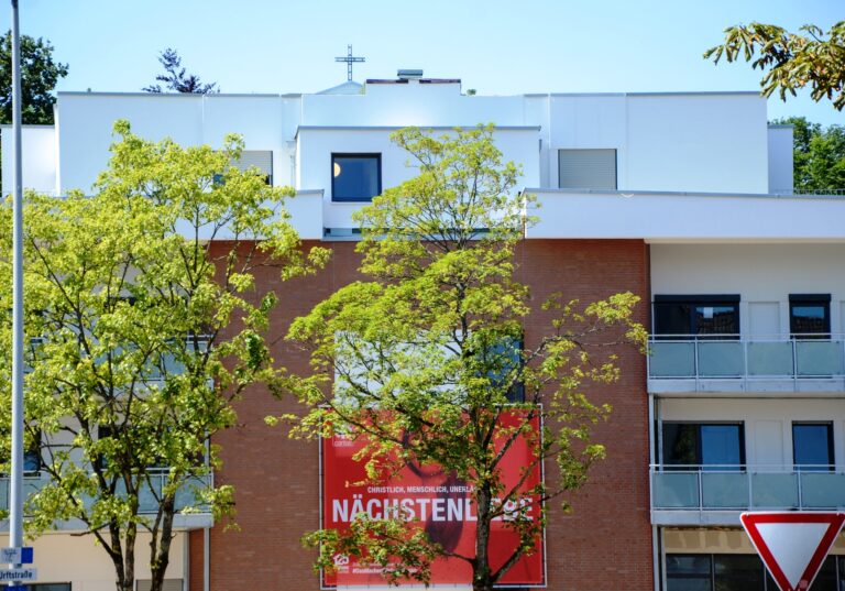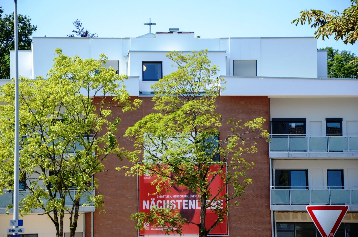 Der Caritasverband Region Mönchengladbach hat den Umbau eines bestehenden Kirchengebäudes zu Wohnzwecken in Mönchengladbach-Rheydt durchgeführt. Das Kirchengebäude aus den 1960er-Jahren wurde zunächst vollständig entkernt. Die ursprüngliche Gebäudehülle blieb dabei erhalten.
