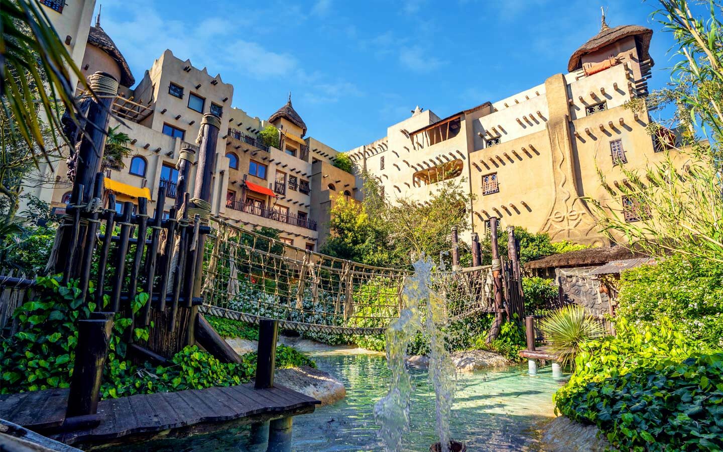 Das Hotel umfasst folgende Funktionsbereiche: Hotelzimmer (115 Standardzimmer, eine Suite, eine Präsidentensuite), öffentliche Bereiche (eine Lobby, ein Café, ein Restaurant, ein Shop, diverse Konferenzräume sowie Kinderbetreuung), Verwaltungsbereich (Office- und Backoffice-Räume, Housekeeping, Küche), UG (Personal- und Technikräume). Das Gebäude öffnet sich U-förmig zum Freizeitpark. Die Gartenanlagen wurden traditionell afrikanisch gestaltet.