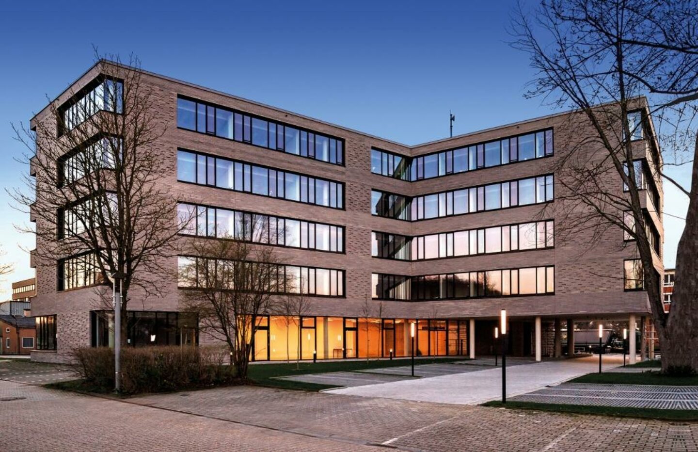 Mit dem fünfgeschossigen Verwaltungsneubau vereinigen sich die Bestandsgebäude der PVS Mülheim an der Remscheider Straße und der Neubau an der Solinger Straße nun mehr zu einer neuen „Campus-Situation“. Mit der Neubaumaßnahme wird die bestehende Grundstücksfläche des Standorts der PVS um 3.620 m² erweitert.